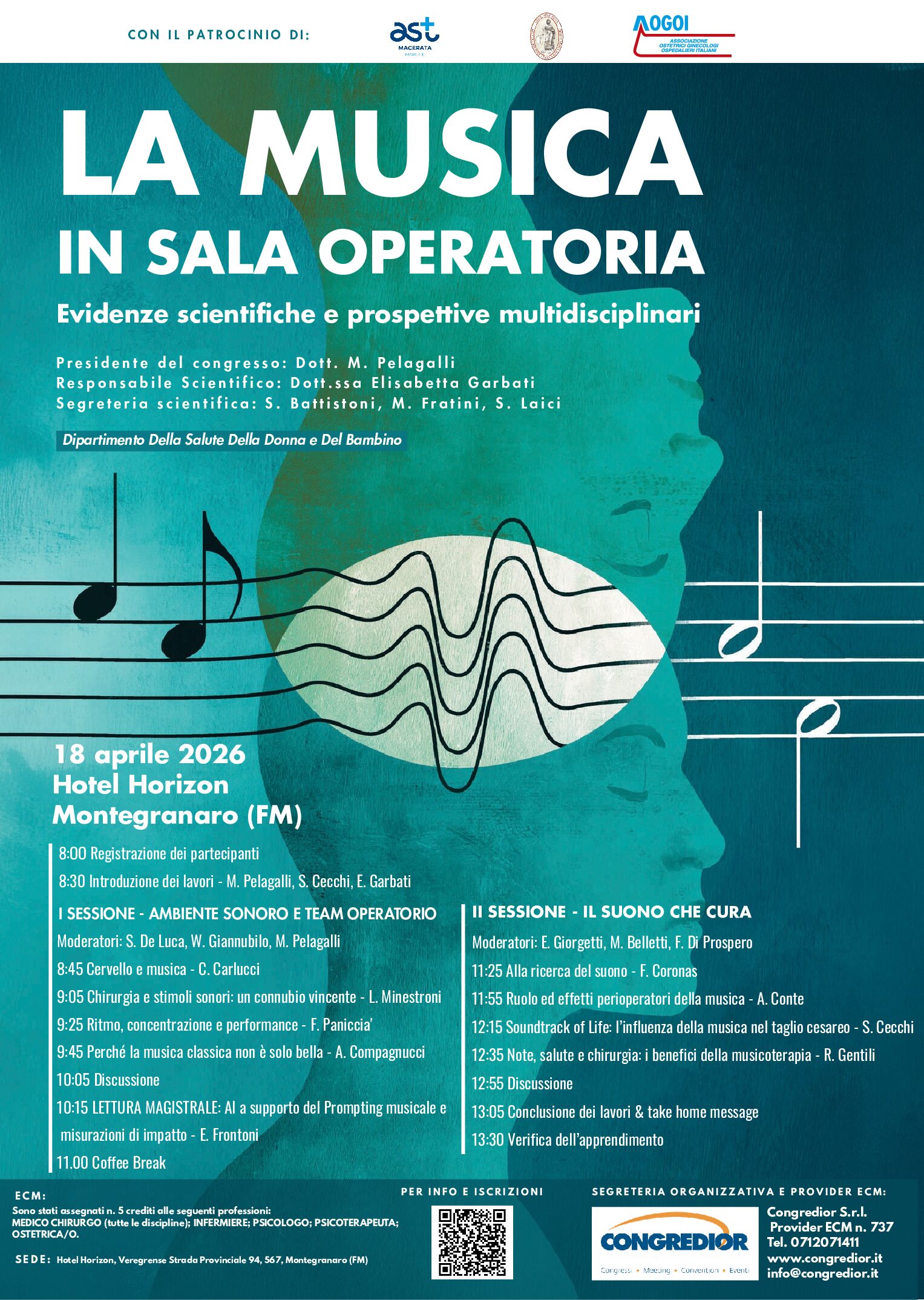 24 Marzo 2026 presidenza omceo 0 Comments Provider: CONGREDIOR Segreteria organizzativa: tel. 0712071411 Patrocinio dell’ Ordine dei Medici Chirurghi ed Odontoiatri di Macerata 18/04/2026 – Horizon Hotel – Montegranaro – Partecipazione gratuita – Crediti ECM: 5 PROGRAMMA ALLEGATO AGENAS LINK ISCRIZIONI